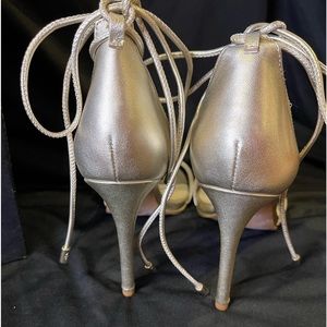 Kenneth Cole Soft Gold Heels, size 9.5. These are very cute and stylish heels that tie around the ankle. The heel height is 4 inches. Only worn one time and in excellent condition. Comes from a smoke-free home.