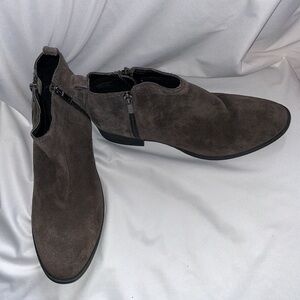 Kenneth Cole Suede Leather Gray Dara Ankle Bootie size 9. Very good preowned condition. Slight flaw in suede noted in pictures and video but soles look to have no wear at all.