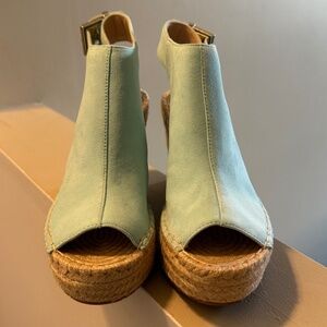 Wedge with 3” heel. Seaglass colored suede upper. Never worn and still in original box. $120 at Macys