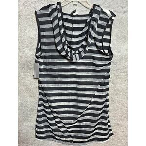 Kenneth Cole Reaction Tank Hoodie Womens L Striped V Neck Sleeveless Black White