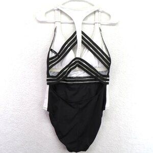 Kenneth Cole Swimsuit Womens Medium Black White One Piece Strappy Plunge Swimwear