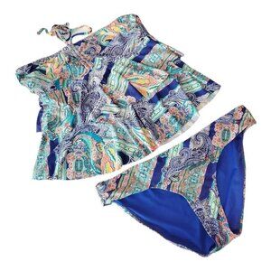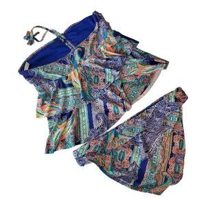 Kenneth Cole Swimsuit XL Paisley Intuition Tiered Tankini Ocean Blue 2 piece.
