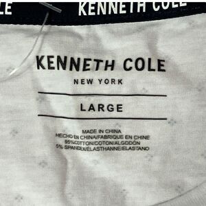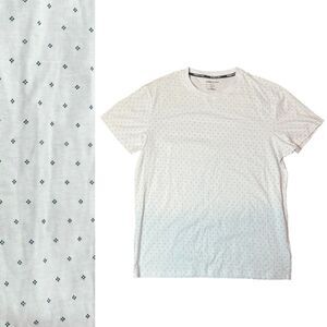 Kenneth Cole T Shirt Mens Large White Navy Micro Dot Pattern Crew Neck Casual