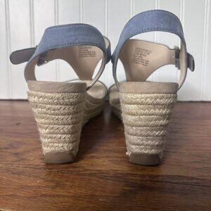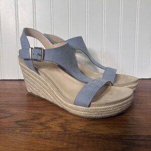 Kenneth Cole T-Strap Sandal Wedges 9.5 Lt Blue Summer Shoes Heels Bohemian