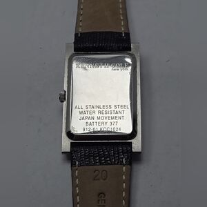 Kenneth Cole Tank Watch Men 26mm KC1024 Silver Tone Black Leather New Battery