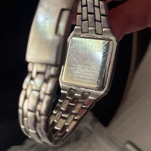 Kenneth Cole Tank Watch Women 26mm Silver Tone. Everyday wear and tear but in good condition. *needs new battery.