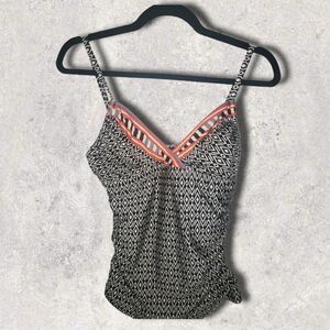 Kenneth Cole Tankini Top V Neck Removable Pads Geometric Boho Swimwear swimtop small