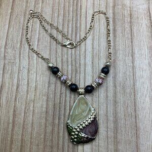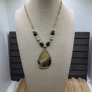 Kenneth Cole Tear Drop Enamel Pendant Beaded Necklace