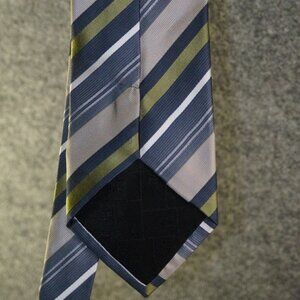 Kenneth Cole Tie Blue Green Beige Diagonal Stripe Silk Blend Modern Menswear