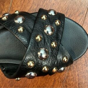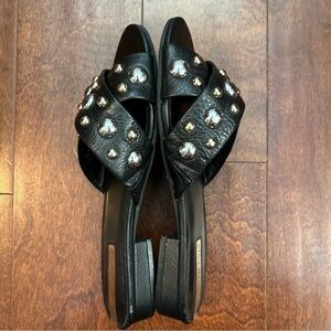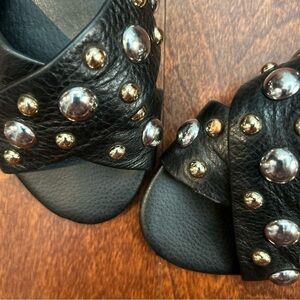 Kenneth Cole Verna Stud Slides in Black Leather, Mixed Metal, Size 7
