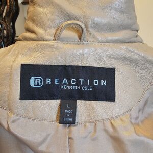 Kenneth Cole Vintage Y2K Tan Leather Fitted Zip Moto Jacket Womens Sz L New NWT