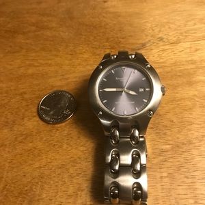 Silver Kenneth Cole Watch with pearled grey face. Needs battery.