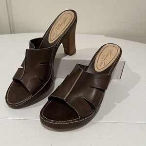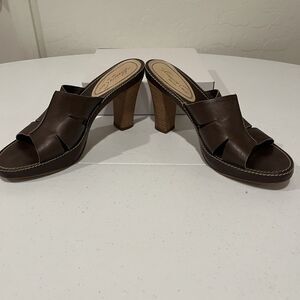 Kenneth Cole Women 9 1/2 Brown Leather Heel Sandals (3 1/2 In. Heel)