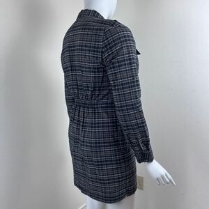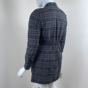 Kenneth Cole Women Size 14 Gray Plaid Cotton Shirt Mini Dress Roll Sleeve Tunic