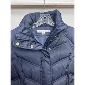 Kenneth Cole Womens Medium Down Puffer Coat Mid Length Quilted Jacket Navy Zip
