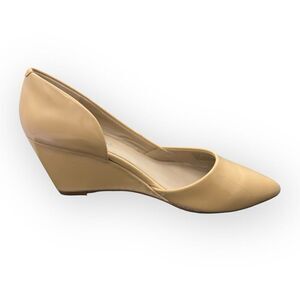 Kenneth Cole Womens Pointed Toe Patent Leather Wedge Ellis Half d'Orsay Pumps Cream Sz 7