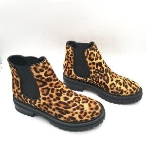 Kenneth Cole Women's Rhode Leopard-Print Calf Hair Chelsea Booties Size 6