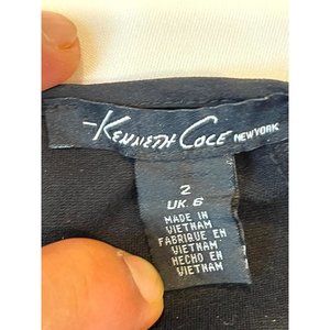 Kenneth Cole Womens Sheath Dress Color Block Round Neck Back Zip Gray Black SZ 2