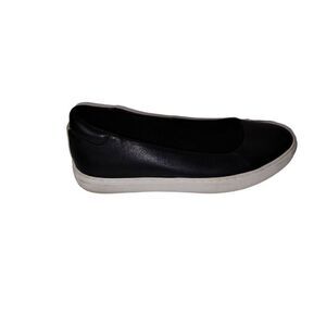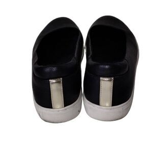 Kenneth Cole Womens Slip On Size 6.5 Black Leather Gold Trim White Platform