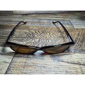 Kenneth Cole womens sunglasses featuring a brown tortoise frame with a subtle cat eye style and brown tinted lenses. Inside arm reads size 4718-140. Lightweight design with Kenneth Cole branding on the arms. Some light surface wear and a few scratches on the lenses (see last photo), but still a nice pair for everyday wear. Measurements also shown in photos. Great pre-owned condition.