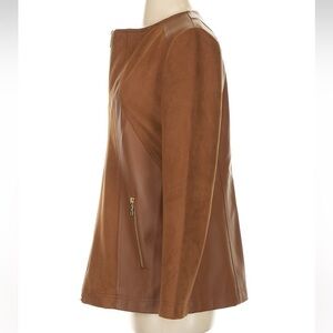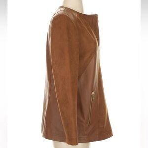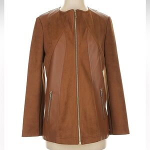 Kenneth Cole Women’s Tobacco Brown Faux Leather Suede Jacket Full Zip Size Small