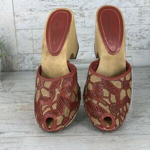Kenneth Cole Womens Wooden Peep Toe Heels Platform Size 8 "Rare" Red/Burgandy