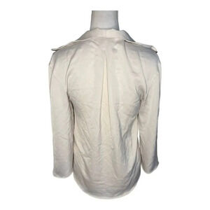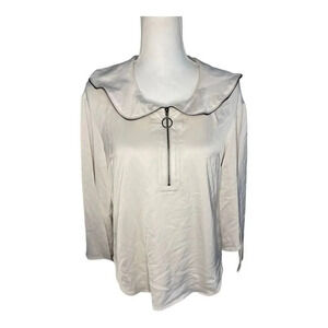 Kenneth Cole Women’s XS Zip Flounce Blouse In Eggshell