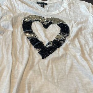 Kenneth Cole Women’s white shirt with sequin heart Size M