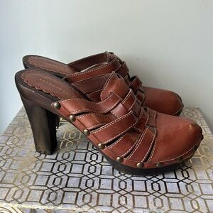 Kenneth Cole Wood Luck Leather Strappy Mule Clogs Women's size 8.5
