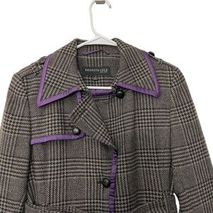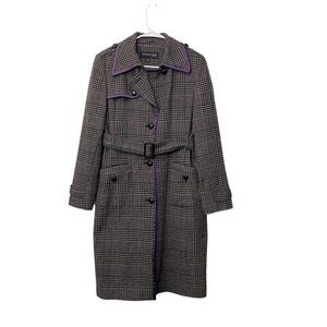 Kenneth Cole Wool Blend Houndstooth Dress Coat | Purple Brown Grey | Siz…