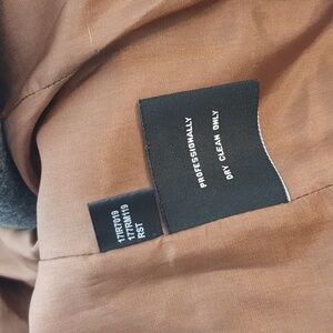 Features: single vent, button closure, fully lined, 2 side pockets, removable belts, epaulette detail,