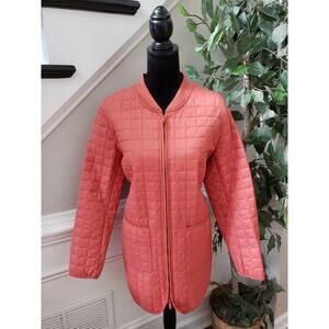 Kenneth Cole XL Coral Quilted Long Jacket Zip Front Lightweight Coat