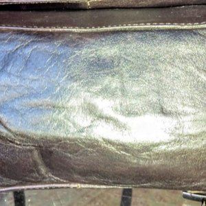 there is a scratch on one of the straps. otherwise the bag is in excellent used condition.