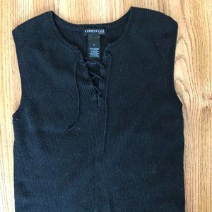 Kenneth Cole black sweater ribbed tank with lace up detailing