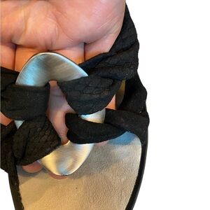 Kenneth Cole black slip in heels with silver buckle