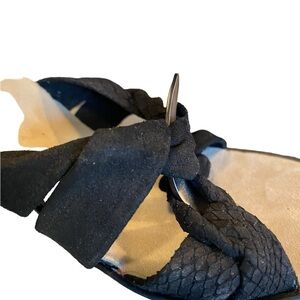 black suede/ microsuede stripes with a animal print and twist design w/ a silver metal buckle .