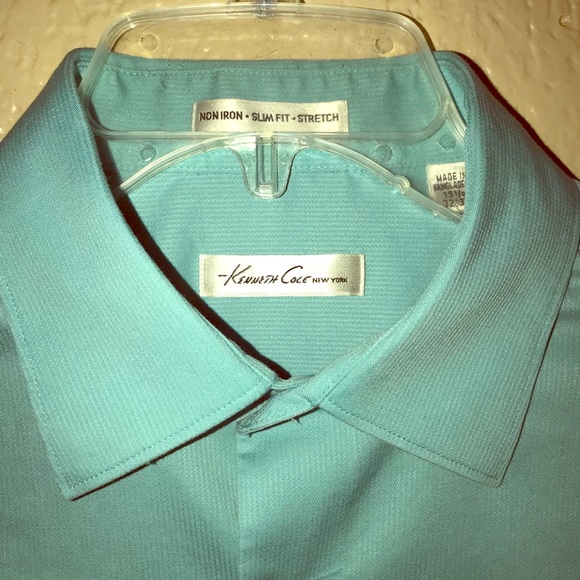 Kenneth Cole light blue button down. Neck is 15 1/2 and sleeves are 32/33.