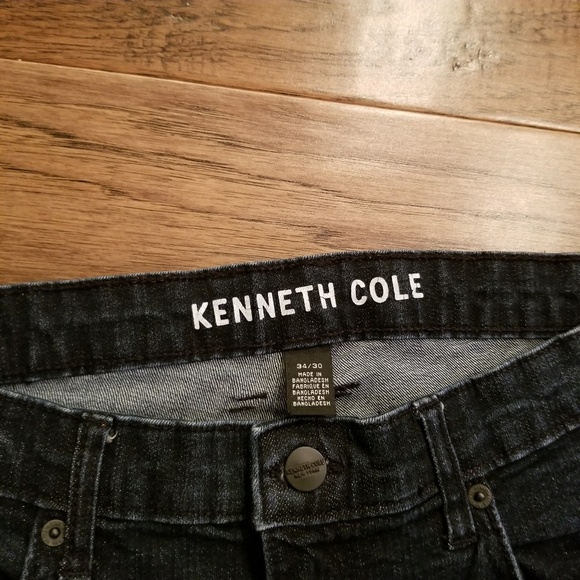 Kenneth Cole jeans. Dark wash. Straight leg. According to tag size 34/30. Some wear on label as pictured.