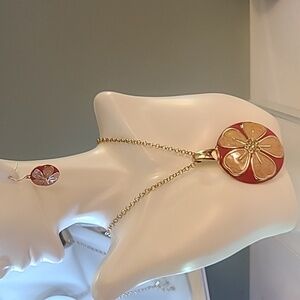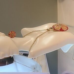 Kenneth Cole necklace and earri set with large flower gold and red color