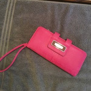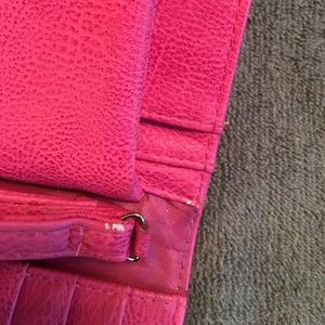 Pink wallet , hold all your essentials 😊Great condition... please note on pics 4 & 5 on strap is a lil dirty and some peeling on pic 5 this reflects price