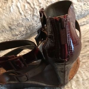 Kenneth Cole wedge strappy mahogany brown sandal shoes