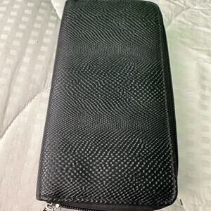 Kenneth Cole Large Black Faux Leather Zip Around Wallet Wristlet