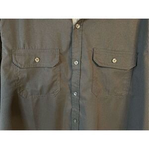 Kenneth Cole New York button up size medium slim fit grid pattern pockets pit to pit 21” length 27.5” (8026)