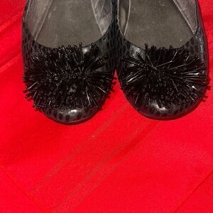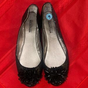 Kenneth Cole Reaction Black Flats with Beaded Poms Size 6