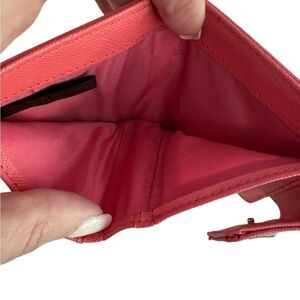 Good used condition, coral color. Silver hardware with snap. Some plastic stuck behind the logo, but can probably be removed. Slight small marks on exterior.