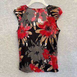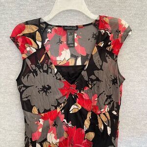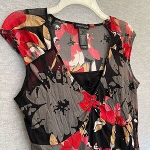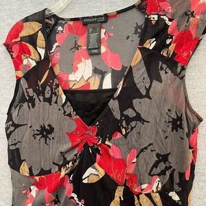 Kenneth Cole Y2K Baby Doll Sheer Top Womens Large Black Red Floral Whimsigoth