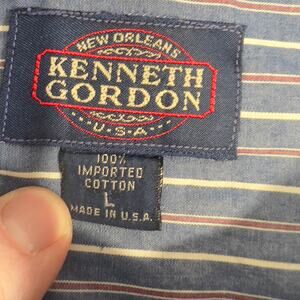 Kenneth Gordon KSG Button Down Shirt Men's Large 100% Imported Cotton Blue Stripe Made In USA Vintage New Orleans 80's 90's