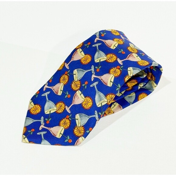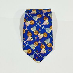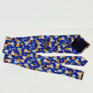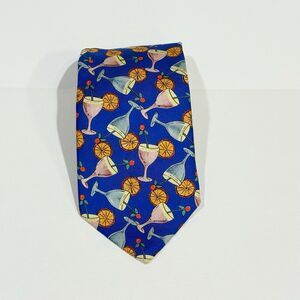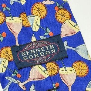 Kenneth Gordon Tie Silk Cocktail Martini Drinks Print Blue Wide 4 Italy Vintage