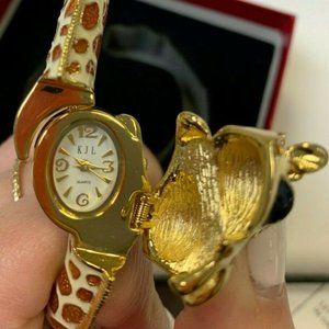 Kenneth J Lane 22K Gold Plated and Enamel Giraffe cuff Bangle Watch bracelet