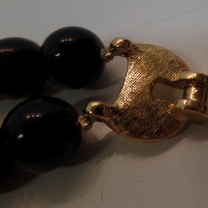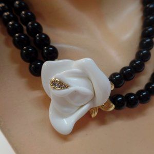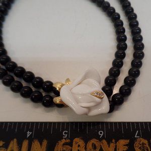 Kenneth J. Lane KJL for Avon Black Beaded Multi Strand Necklace Rose Bling 14"